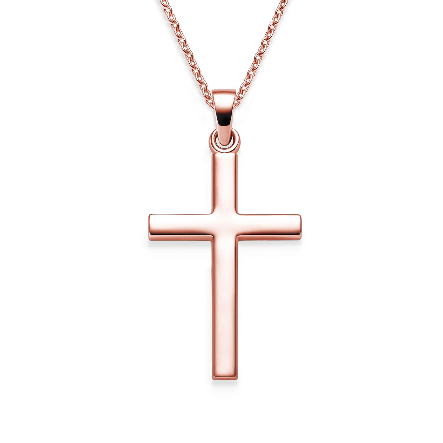 Kreuzkette von Amoonic: Die klassische und elegante Kreuzkette besteht aus hochwertig Rosegold vergoldetem Sterling Silber 925. Mit ihrem zeitlosen Design ist sie für Mädchen und Jungs ein perfektes Geschenk zur Erstkommunion als Kommunion Kreuz oder Kommunion Kette, Geschenk zur Konfirmation, Firmungs Geschenk als christlicher Schmuck oder einfach eine schöne Modeschmuck-Kreuzkette für jeden Tag.