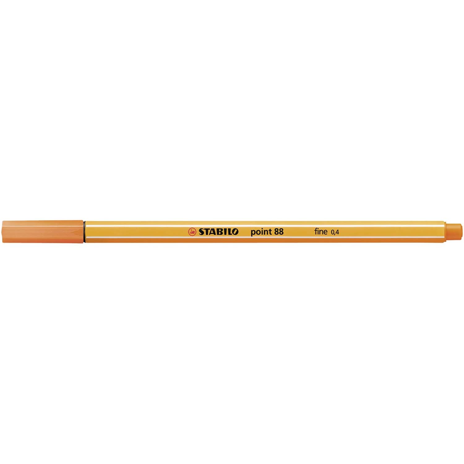 Der STABILO point 88 Fineliner ist mit seinem orangefarbenen Schaft mit den charakteristischen weißen Kanten ein Markenzeichen für Präzision und große Farbvielfalt und nicht umsonst die Nr 1 in Europa. Die in Metall eingefasste Spitze ist dabei schon unzählige Male der Ursprung großer Ideen und genialer Gedanken gewesen. Ob in Beruf, Studium, Schule, Alltag oder in kreativen Momenten, der STABILO point 88 ist dein perfekter Begleiter. metallgefasste Spitze für eine lange Lebensdauer Lineal- und schablonengeeignet hoher Schutz vor dem Austrocknen ohne Kappe Strichstärke 0,4 mm in vielen brillanten Farben erhältlich